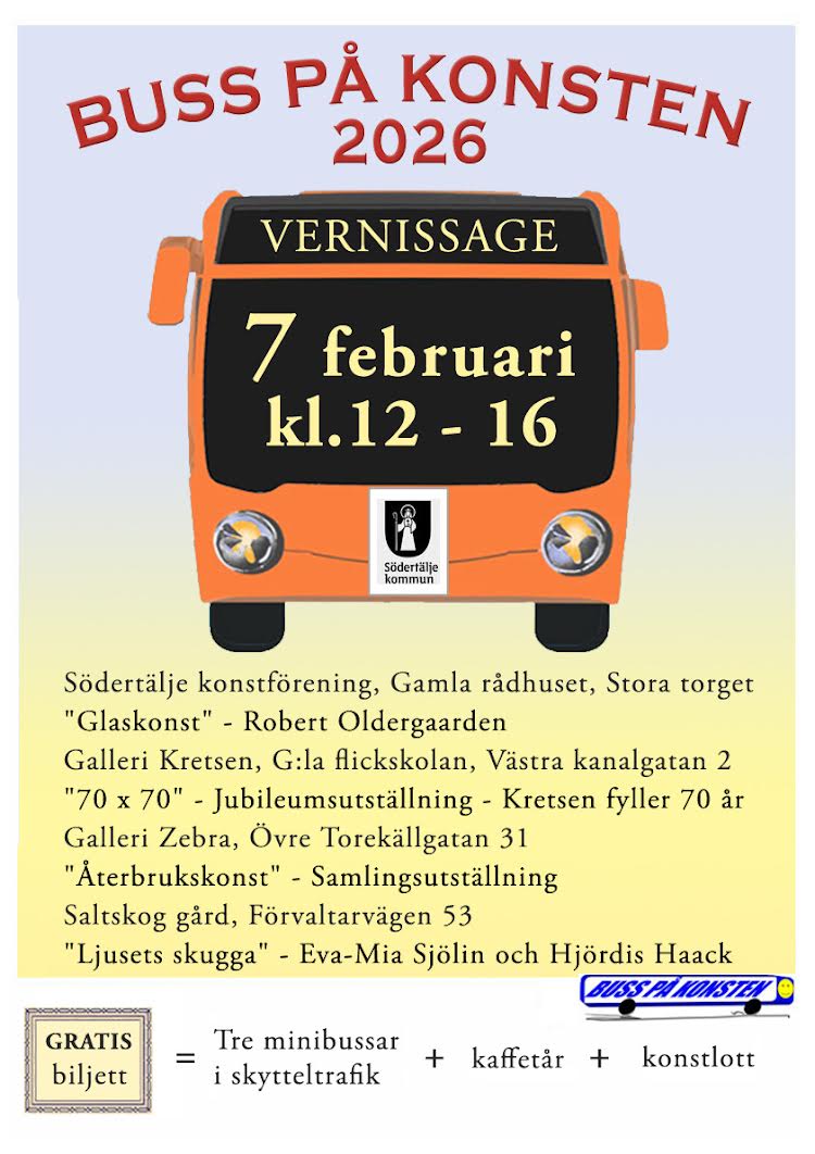 Bussbiljetten får du på rådhuset.Det är också lott på ett konstverk.
